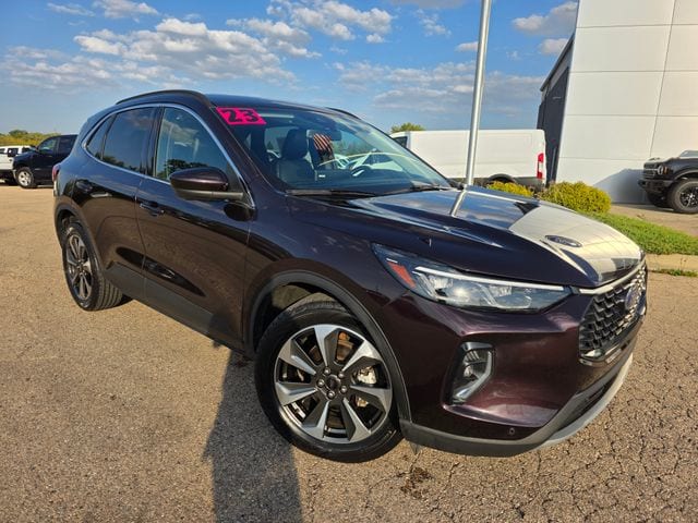 Cinnabar Red Metallic Premium Colorant 2023 Ford Escape Hybrid Platinum AWD eCVT 2.5L iVCT Fresh Arrival, One Owner, Clean Vehicle History, AWD / 4WD / 4X4, Cruise Control, Bluetooth, Navigation System, Backup Camera, SiriusXM, Blind Spot Monitor, Heated Seats, Leather, Remote Engine Start, Power Driver Seat, Rear USB Ports, 2.5L iVCT, Electronic Fuel Door Release, Equipment Group 600A, Navigation system: Connected Navigation, Neutral Towing Capability, Pedestrian Alert Sounder, 2.91 Axle Ratio, 4-Wheel Disc Brakes, 6 Speakers, ABS brakes, Air Conditioning, Alloy wheels, AM/FM radio: SiriusXM, AM/FM Stereo, Auto High-beam Headlights, Auto-dimming Rear-View mirror, Automatic temperature control, Brake assist, Bumpers: body-color, Cargo Mat, Compass, Delay-off headlights, Driver door bin, Driver vanity mirror, Dual front impact airbags, Dual front side impact airbags, Easy Access Cargo Shade, Electronic Stability Control, Emergency communication system: SYNC 4 911 Assist, Engine Block Heater, Exterior Parking Camera Rear, FordPass Connect, Four wheel independent suspension, Front & Rear Floor Liners w/Carpet Mats, Front anti-roll bar, Front Bucket Seats, Front Center Armrest, Front dual zone A/C, Front fog lights, Front reading lights, Fully automatic headlights, Garage door transmitter, Heated ActiveX Trimmed Front Sport Contour Bucket Seats, Heated door mirrors, Heated front seats, Heated steering wheel, Illuminated entry, Knee airbag, Low tire pressure warning, Memory seat, Occupant sensing airbag, Outside temperature display, Overhead airbag, Overhead console, Panic alarm, Passenger door bin, Passenger vanity mirror, Power door mirrors, Power driver seat, Power Liftgate, Power passenger seat, Power steering, Power windows, Radio data system, Rain sensing wipers, Rear anti-roll bar, Rear reading lights, Rear seat center armrest, Rear window defroster, Rear window wiper, Remote keyless entry, Security system, Speed control, Speed-sensing steering, Speed-Sensitive Wipers, Split folding rear seat, Spoiler, Steering wheel mounted audio controls, SYNC 4 w/Enhanced Voice Recognition, Telescoping steering wheel, Tilt steering wheel, Traction control, Trip computer, Variably intermittent wipers, Wheels: 19" Machined-Face Aluminum, 2.5L iVCT, Electronic Fuel Door Release, Equipment Group 600A, Navigation system: Connected Navigation, Neutral Towing Capability, Pedestrian Alert Sounder.
