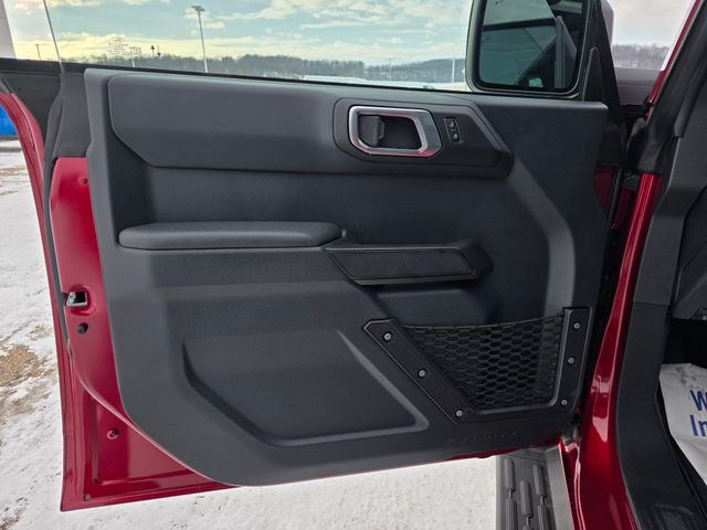 Ruby Red Metallic 2025 Ford Bronco Big Bend 4WD 10-Speed Automatic 2.3L EcoBoost I-4 Fresh Arrival, AWD / 4WD / 4X4, Trailer Hitch / Tow Package, Cruise Control, Bluetooth, Navigation System, Backup Camera, SiriusXM, Blind Spot Monitor, Heated Seats, 2-Door Intelligent Access w/Lock/Unlock, Ambient Footwell Lighting, Black Appearance Package, Black Molded-In-Color Door Handles, Black Molded-In-Color Fender Flares, Black Molded-In-Color Sideview Mirror Caps, Black-Painted Molded-In-Color Grille, Connected Navigation, Dr & Pass Illuminated Sliding Visor Vanity Mirrors, Dual Smart Charging USB Ports, Dual-Zone Electronic Automatic Temperature Control, Equipment Group 222A Mid Package, Front Row Heated Seats, Navigation System, Power Outlet - Back Side of Center Floor Console, Rear Parking Sensors, 4-Wheel Disc Brakes, 4.46 Axle Ratio, 7 Speakers, ABS brakes, Air Conditioning, Alloy wheels, AM/FM radio: SiriusXM with 360L, AM/FM Stereo, Auto High-Beam Headlamps, Auto High-beam Headlights, BLIS Blind Spot Information System, Brake assist, Cloth Bucket Seats, Compass, Delay-off headlights, Door Storage Bags, Driver door bin, Driver vanity mirror, Dual front impact airbags, Dual front side impact airbags, Electronic Stability Control, Emergency communication system: 911 Assist, Exterior Parking Camera Rear, Front anti-roll bar, Front Bucket Seats, Front Center Armrest, Front License Plate Bracket, Front reading lights, Front wheel independent suspension, Fully automatic headlights, Hard Top Sound Deadening Headliner, Heated door mirrors, Illuminated entry, Integrated roll-over protection, Lane-Keeping System, Leather Shift Knob, Low tire pressure warning, Occupant sensing airbag, Outside temperature display, Overhead airbag, Overhead console, Panic alarm, Passenger door bin, Passenger vanity mirror, Power door mirrors, Power steering, Power windows, Pre-Collision Assist w/Automatic Emergency Braking, Radio data system, Rear-View Camera, Rear-Window Defroster & Washer, Remote keyless entry, Security system, Shadow Black Painted Hard Top, Side Step, SiriusXM w/360L, Speed control, Split folding rear seat, Steering wheel mounted audio controls, SYNC 4, Tachometer, Telescoping steering wheel, Tilt steering wheel, Traction control, Trip computer, Variably intermittent wipers, Wheels: 17" Carbonized Gray-Painted Aluminum, 2-Door Intelligent Access w/Lock/Unlock, Ambient Footwell Lighting, Black Appearance Package, Black Molded-In-Color Door Handles, Black Molded-In-Color Fender Flares, Black Molded-In-Color Sideview Mirror Caps, Black-Painted Molded-In-Color Grille, Connected Navigation, Dr & Pass Illuminated Sliding Visor Vanity Mirrors, Dual Smart Charging USB Ports, Dual-Zone Electronic Automatic Temperature Control, Equipment Group 222A Mid Package, Front Row Heated Seats, Navigation System, Power Outlet - Back Side of Center Floor Console, Rear Parking Sensors.
