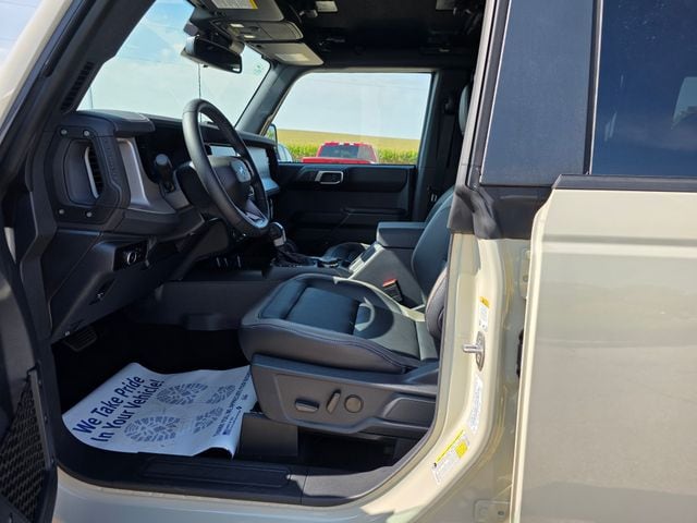 Desert Sand 2025 Ford Bronco Outer Banks 4WD 10-Speed Automatic 2.7L EcoBoost V6 Fresh Arrival, AWD / 4WD / 4X4, Trailer Hitch / Tow Package, Cruise Control, Bluetooth, Navigation System, Backup Camera, SiriusXM, Blind Spot Monitor, Heated Seats, Leather, Remote Engine Start, Rear USB Ports, 4.7 Final Drive Ratio, Black Appearance Package, Black Molded-In-Color Door Handles, Black Molded-In-Color Fender Flares, Black Molded-In-Color Sideview Mirror Caps, Black-Painted Molded-In-Color Grille, Equipment Group 312A Mid Package, Hard Top Sound Deadening Headliner, High Clearance Fender Flares, High Clearance Suspension, Navigation system: Connected Navigation, Painted Hard Top, Position-Sensitive Bilstein Shock Absorbers, Rear-Window Defroster & Washer, Sasquatch Package, Tailgate Table (DIO), Trailer Tow Package (DIO), Tube Doors - 4-Door (DIO), 18" Bright Machined Aluminum Wheels, 4-Wheel Disc Brakes, 7 Speakers, ABS brakes, Air Conditioning, Alloy wheels, AM/FM radio: SiriusXM with 360L, AM/FM Stereo, Auto High-beam Headlights, Auto-dimming Rear-View mirror, Automatic temperature control, Brake assist, Compass, Connected Navigation, Delay-off headlights, Driver door bin, Driver vanity mirror, Dual front impact airbags, Dual front side impact airbags, Electronic Stability Control, Emergency communication system: 911 Assist, Exterior Parking Camera Rear, Front anti-roll bar, Front Bucket Seats, Front Center Armrest, Front dual zone A/C, Front fog lights, Front reading lights, Front wheel independent suspension, Fully automatic headlights, Heated door mirrors, Heated front seats, Heated Leather-Trimmed/Vinyl Bucket Seats, Heated steering wheel, Illuminated entry, Integrated roll-over protection, Leather Shift Knob, Low tire pressure warning, Occupant sensing airbag, Outside temperature display, Overhead airbag, Overhead console, Panic alarm, Passenger door bin, Passenger vanity mirror, Power door mirrors, Power driver seat, Power passenger seat, Power steering, Power windows, Radio data system, Rear seat center armrest, Remote keyless entry, Security system, SiriusXM w/360L, Speed control, Split folding rear seat, Steering wheel mounted audio controls, SYNC 4, Tachometer, Telescoping steering wheel, Tilt steering wheel, Traction control, Trip computer, Variably intermittent wipers, Voltmeter, 4.7 Final Drive Ratio, Black Appearance Package, Black Molded-In-Color Door Handles, Black Molded-In-Color Fender Flares, Black Molded-In-Color Sideview Mirror Caps, Black-Painted Molded-In-Color Grille, Equipment Group 312A Mid Package, Hard Top Sound Deadening Headliner, High Clearance Fender Flares, High Clearance Suspension, Navigation system: Connected Navigation, Painted Hard Top, Position-Sensitive Bilstein Shock Absorbers, Rear-Window Defroster & Washer, Sasquatch Package, Tailgate Table (DIO), Trailer Tow Package (DIO), Tube Doors - 4-Door (DIO).