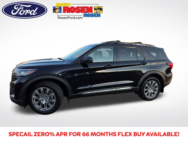 Agate Black Metallic 2025 Ford Explorer Active 4WD 10-Speed Automatic 2.3L EcoBoost I-4 Fresh Arrival, AWD / 4WD / 4X4, Trailer Hitch / Tow Package, Cruise Control, Bluetooth, Navigation System, Backup Camera, SiriusXM, Blind Spot Monitor, Heated Seats, Leather, Moonroof / Sunroof, Splash Guards, Remote Engine Start, Power Driver Seat, Rear USB Ports, 4WD, Active Comfort Package, Equipment Group 200A Standard Package, Front Fascia, Heated ActiveX Seating Material Captain's Chairs, Heated Steering Wheel, Navigation System, Remote Start System, Second Row HVAC Controls, Universal Garage Door Opener (UGDO), 3.58 Non-Limited Slip Rear Axle, 3rd row seats: bench, 4-Wheel Disc Brakes, 6 Speakers, ABS brakes, Air Conditioning, Alloy wheels, AM/FM radio: SiriusXM with 360L, AM/FM Stereo, Apple CarPlay/Android Auto, Auto High-beam Headlights, Automatic temperature control, Brake assist, Bumpers: body-color, Compass, Delay-off headlights, Driver door bin, Driver vanity mirror, Dual front impact airbags, Dual front side impact airbags, Electronic Stability Control, Emergency communication system: 911 Assist, Exterior Parking Camera Rear, Four wheel independent suspension, Front anti-roll bar, Front Bucket Seats, Front Center Armrest, Front dual zone A/C, Front reading lights, Fully automatic headlights, Heated door mirrors, Heated front seats, Illuminated entry, Knee airbag, Leather steering wheel, Low tire pressure warning, Occupant sensing airbag, Outside temperature display, Overhead airbag, Overhead console, Panic alarm, Passenger door bin, Passenger vanity mirror, Power door mirrors, Power driver seat, Power Liftgate, Power passenger seat, Power steering, Power windows, Rear air conditioning, Rear anti-roll bar, Rear reading lights, Rear window defroster, Rear window wiper, Remote keyless entry, Security system, Speed control, Speed-sensing steering, Speed-Sensitive Wipers, Split folding rear seat, Spoiler, Steering wheel mounted audio controls, Tachometer, Telescoping steering wheel, Tilt steering wheel, Traction control, Trip computer, Unique Heated Cloth Captain's Chairs, Variably intermittent wipers, Wheels: 18" Sparkle Silver-Painted Aluminum, 4WD, Active Comfort Package, Equipment Group 200A Standard Package, Front Fascia, Heated ActiveX Seating Material Captain's Chairs, Heated Steering Wheel, Navigation System, Remote Start System, Second Row HVAC Controls, Universal Garage Door Opener (UGDO).