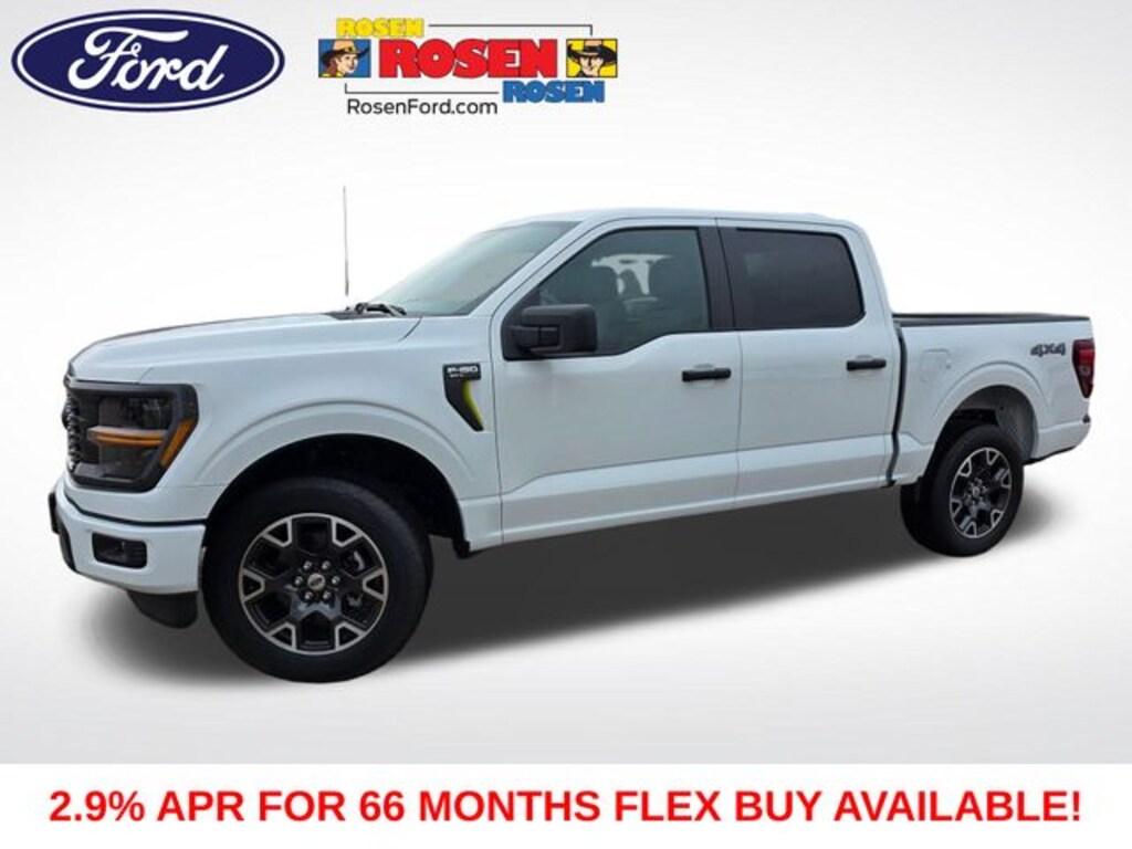 Oxford White 2025 Ford F-150 STX 4WD 10-Speed Automatic 5.0L V8 Fresh Arrival, AWD / 4WD / 4X4, Trailer Hitch / Tow Package, Cruise Control, Bluetooth, Backup Camera, 4WD, Equipment Group 200A Mid, GVWR: 6,650 lbs Payload Package, GVWR: 7,100 lbs Payload Package, LED Fog Lamps w/LED Cornering Lamp, Wheels: 20" Dark Gray w/Machined Aluminum, 4-Wheel Disc Brakes, 6 Speakers, ABS brakes, Air Conditioning, Alloy wheels, AM/FM radio: SiriusXM with 360L, Auto High-beam Headlights, Brake assist, Bumpers: body-color, Compass, Delay-off headlights, Driver door bin, Dual front impact airbags, Dual front side impact airbags, Electronic Stability Control, Emergency communication system: SYNC 4 911 Assist, Front anti-roll bar, Front Bucket Seats, Front Center Armrest, Front License Plate Bracket, Front reading lights, Front wheel independent suspension, Fully automatic headlights, Heated door mirrors, Illuminated entry, Low tire pressure warning, Occupant sensing airbag, Outside temperature display, Overhead airbag, Overhead console, Panic alarm, Passenger door bin, Passenger vanity mirror, Power door mirrors, Power steering, Power windows, Radio data system, Radio: AM/FM Stereo w/SiriusXM 360L, Rear Parking Sensors, Rear step bumper, Rear window defroster, Remote keyless entry, Security system, Speed control, Split folding rear seat, Steering wheel mounted audio controls, SYNC 4 w/Enhanced Voice Recognition, Tachometer, Telescoping steering wheel, Tilt steering wheel, Traction control, Trip computer, Variably intermittent wipers, Voltmeter, 4WD, Equipment Group 200A Mid, GVWR: 6,650 lbs Payload Package, GVWR: 7,100 lbs Payload Package, LED Fog Lamps w/LED Cornering Lamp, Wheels: 20" Dark Gray w/Machined Aluminum.