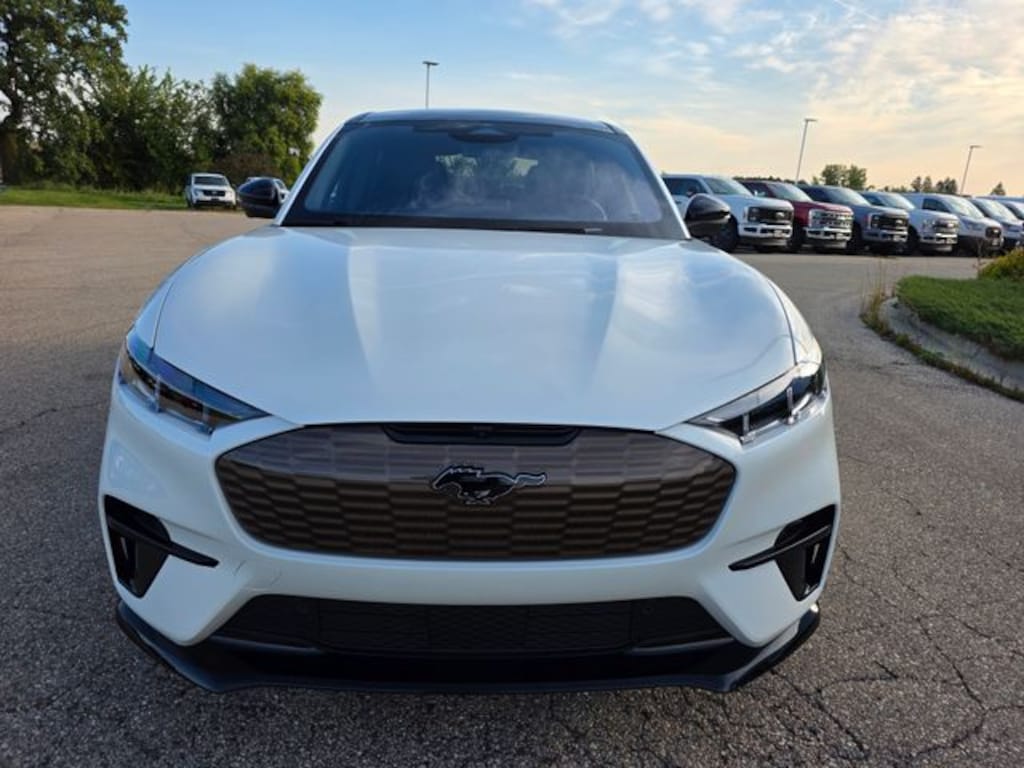 Star White Metallic Tri-Coat 2025 Ford Mustang Mach-E GT AWD Single-Speed Automatic Electric Motor Fresh Arrival, AWD / 4WD / 4X4, Cruise Control, Bluetooth, Navigation System, Backup Camera, SiriusXM, Blind Spot Monitor, Heated Seats, Leather, Moonroof / Sunroof, Power Driver Seat, Rear USB Ports, Bronze Appearance Package, Bronze Mesh Front Grille Shield, Cellular Connectivity for Audio/Video Streaming, Equipment Group 400A Standard Package, Ford Connectivity Package (One-Time Purchase), Mach-E 4X Door Badges & Rear GT Badge, Navigation system: Connected Navigation, Wheels: 20" Sinister Bronze Painted, 10 Speakers, 4-Wheel Disc Brakes, ABS brakes, Adaptive suspension, Air Conditioning, Alloy wheels, AM/FM radio: SiriusXM with 360L, Apple CarPlay/Android Auto, Auto High-beam Headlights, Auto-dimming Rear-View mirror, Automatic temperature control, Brake assist, Bumpers: body-color, Compass, Delay-off headlights, Driver door bin, Driver vanity mirror, Dual front impact airbags, Dual front side impact airbags, Electronic Stability Control, Emergency communication system: 911 Assist, Exterior Parking Camera Rear, Four wheel independent suspension, Front anti-roll bar, Front Bucket Seats, Front Center Armrest, Front dual zone A/C, Front reading lights, Fully automatic headlights, Garage door transmitter, Heated door mirrors, Heated front seats, Heated Perforated ActiveX Performance Seats, Heated steering wheel, Illuminated entry, Knee airbag, Low tire pressure warning, Memory seat, Occupant sensing airbag, Outside temperature display, Overhead airbag, Overhead console, Panic alarm, Passenger door bin, Passenger vanity mirror, Power door mirrors, Power driver seat, Power Liftgate, Power passenger seat, Power steering, Power windows, Radio data system, Radio: B&O Sound System by Bang & Olufsen, Rain sensing wipers, Rear anti-roll bar, Rear seat center armrest, Rear side impact airbag, Rear window defroster, Rear window wiper, Remote keyless entry, Security system, SiriusXM w/360L, Speed control, Speed-sensing steering, Speed-Sensitive Wipers, Split folding rear seat, Spoiler, Steering wheel mounted audio controls, SYNC 4A w/Enhanced Voice Recognition, Telescoping steering wheel, Tilt steering wheel, Traction control, Trip computer, Turn signal indicator mirrors, Variably intermittent wipers, Wheels: 20" Monochromatic High Gloss Black-Painted, Bronze Appearance Package, Bronze Mesh Front Grille Shield, Cellular Connectivity for Audio/Video Streaming, Equipment Group 400A Standard Package, Ford Connectivity Package (One-Time Purchase), Mach-E 4X Door Badges & Rear GT Badge, Navigation system: Connected Navigation, Wheels: 20" Sinister Bronze Painted.