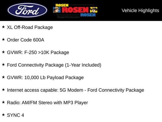 Inside, the F-250SD XL offers a comfortable and well-appointed cabin, with features like SYNC 4, a 40/20/40 split bench seat, and a range of connectivity options to keep you connected on the go. The Rapid-Heat Supplemental Cab Heater and Dual AGM 68 AH Battery ensure you're prepared for any weather, while the Upfitter Switches provide the flexibility to customize your truck to your specific needs.