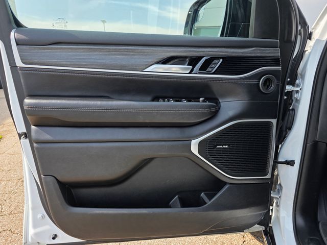 Bright White Clearcoat 2023 Jeep Wagoneer Series III 4WD 8-Speed Automatic 3.0L I6 Clean Vehicle History, AWD / 4WD / 4X4, Cruise Control, Bluetooth, Navigation System, Backup Camera, SiriusXM, Blind Spot Monitor, Heated Seats, Leather, Remote Engine Start, Power Driver Seat, Rear USB Ports, 60/40 Power Recline 3rd Row Seat, Heads-Up Display, Navigation System, Preferred Equipment Group, Quadra-Lift Air Suspension, Quick Order Package 25N, Semi Active Damping, 10 Speakers, 20" x 9.0" Aluminum Wheels, 3.55 Rear Axle Ratio, 3rd row seats: bench, 4-Wheel Disc Brakes, ABS brakes, Adjustable pedals, Air Conditioning, Alloy wheels, AM/FM radio: SiriusXM with 360L, Anti-whiplash front head restraints, Audio memory, Auto High-beam Headlights, Auto-dimming door mirrors, Auto-dimming Rear-View mirror, Auto-leveling suspension, Automatic temperature control, Brake assist, Bumpers: body-color, Compass, Delay-off headlights, Driver door bin, Driver vanity mirror, Driver's Seat Mounted Armrest, Dual front impact airbags, Dual front side impact airbags, Electronic Stability Control, Emergency communication system: Automatic SOS Call, Exterior Parking Camera Rear, Four wheel independent suspension, Front anti-roll bar, Front Bucket Seats, Front Center Armrest w/Storage, Front dual zone A/C, Front fog lights, Front reading lights, Fully automatic headlights, Garage door transmitter, Genuine wood console insert, Genuine wood dashboard insert, Genuine wood door panel insert, Heated door mirrors, Heated front seats, Heated rear seats, Heated steering wheel, Illuminated entry, Knee airbag, Leather Trimmed Bucket Seats, Low tire pressure warning, Memory seat, Normal Duty Suspension, Occupant sensing airbag, Outside temperature display, Overhead airbag, Overhead console, Panic alarm, Passenger door bin, Passenger seat mounted armrest, Passenger vanity mirror, Pedal memory, Power adjustable front head restraints, Power door mirrors, Power driver seat, Power Liftgate, Power passenger seat, Power steering, Power windows, Radio data system, Radio: Uconnect 5 Nav w/10.1" Display, Rain sensing wipers, Rear air conditioning, Rear anti-roll bar, Rear dual zone A/C, Rear reading lights, Rear seat center armrest, Rear window defroster, Rear window wiper, Reclining 3rd row seat, Remote keyless entry, Security system, Speed control, Speed-sensing steering, Speed-Sensitive Wipers, Split folding rear seat, Steering wheel memory, Steering wheel mounted audio controls, Tachometer, Telescoping steering wheel, Tilt steering wheel, Traction control, Trip computer, Turn signal indicator mirrors, Variably intermittent wipers, Ventilated front seats, Voltmeter, 60/40 Power Recline 3rd Row Seat, Heads-Up Display, Navigation System, Preferred Equipment Group, Quadra-Lift Air Suspension, Quick Order Package 25N, Semi Active Damping.