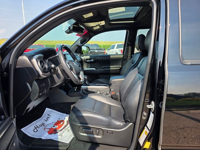 Black 2023 Toyota Tacoma Limited V6 4WD 6-Speed Automatic 3.5L V6 PDI DOHC 24V LEV3-ULEV70 278hp Clean Vehicle History, AWD / 4WD / 4X4, Trailer Hitch / Tow Package, Cruise Control, Bluetooth, Navigation System, Backup Camera, SiriusXM, Blind Spot Monitor, Heated Seats, Leather, Moonroof / Sunroof, Power Driver Seat, Rear USB Ports, 4WD, Navigation System, 18" Polished Alloy Wheels, 7 Speakers, ABS brakes, Air Conditioning, Alloy wheels, AM/FM radio: SiriusXM, Anti-whiplash front head restraints, Apple CarPlay/Android Auto, Auto High-beam Headlights, Auto-dimming Rear-View mirror, Automatic temperature control, Axle Ratio: 3.91, Brake assist, Bumpers: body-color, Driver door bin, Driver vanity mirror, Dual front impact airbags, Dual front side impact airbags, Electronic Stability Control, Emergency communication system: Safety Connect (1-year trial), Front anti-roll bar, Front Bucket Seats, Front Center Armrest, Front dual zone A/C, Front fog lights, Front reading lights, Front Seats, Front wheel independent suspension, Fully automatic headlights, Garage door transmitter: HomeLink, Heated door mirrors, Heated front seats, Illuminated entry, Knee airbag, Leather Seat Trim, Leather Shift Knob, Low tire pressure warning, Occupant sensing airbag, Outside temperature display, Overhead airbag, Overhead console, Panic alarm, Passenger door bin, Passenger vanity mirror, Power door mirrors, Power driver seat, Power moonroof, Power steering, Power windows, Radio: Premium JBL Audio w/Dynamic Navigation, Rear Parking Sensors, Rear step bumper, Remote keyless entry, Security system, Speed control, Speed-sensing steering, Split folding rear seat, Steering wheel mounted audio controls, Tachometer, Telescoping steering wheel, Tilt steering wheel, Traction control, Trip computer, Turn signal indicator mirrors, Variably intermittent wipers, 4WD, Navigation System.